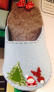 E’ arrivato l’inverno e Natale è alle porte… non c’è niente di meglio di un porta pantofole in feltro con decori caldi e confortevoli, fatti a mano, per te e i tuoi ospiti !