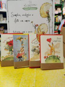 Tutti i prodotti sotto elencati sono statti realizzati con carte certificate e acquerelli naturali. In più, le stampe sono made in italy e plastic free.