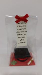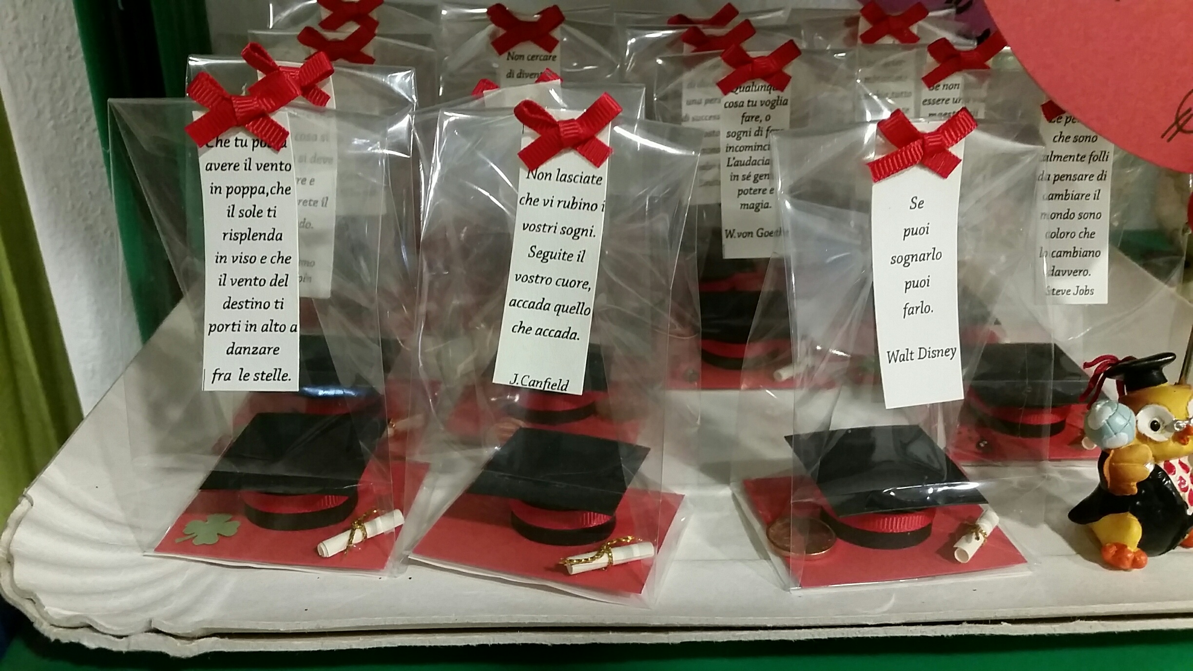 Confezionati singolarmente, ognuno con una frase diversa di auguri per il futuro del neolaureato/a.