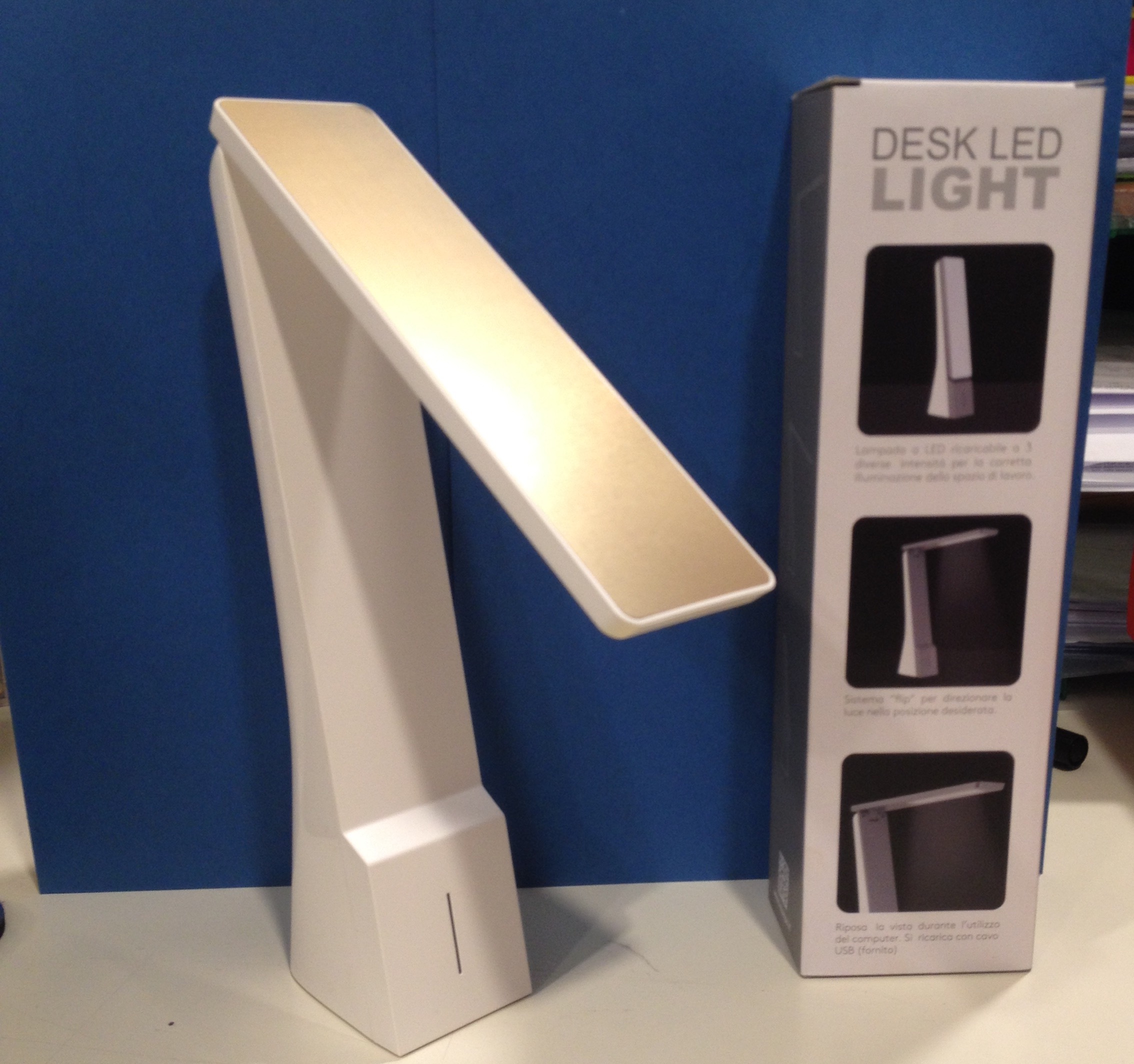 Lampada a LED ricaricabile a 3 diverse intensità per la corretta illuminazione dello spazio di lavoro.