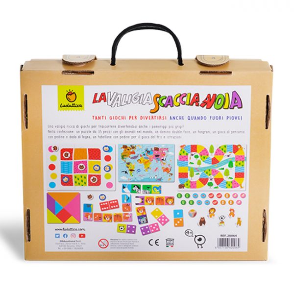 Una valigia ricca di tante attività divertenti! Ideale per quando piove e per giocare in casa, con i suoi giochi educativi e divertenti passare delle piacevoli ore al chiuso non sarà più così noioso! Metti alla prova le tue abilità creative, logiche e manuali con Ludattica!