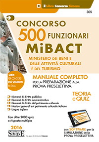 Questo volume, mirato alla preparazione della prova preselettiva, presenta per ognuna delle materie, una trattazione teorica e un migliaio di quiz a risposta multipla utili per testare la preparazione. Particolare risalto è stato dato al «patrimonio culturale italiano» che, anche in considerazione di quelle che sono le funzioni del MiBACT e dei profili messi a concorso, tiene conto non solo dei beni storico-artistici ma anche del patrimonio cinematografico, musicale, teatrale, bibliotecario e archivistico italiano. Utilissimo per allenarsi sempre in vista della prova preselettiva, il software allegato al volume con oltre 2000 quiz (i 1000 quiz del cartaceo + altri 1100 quiz ) per infinite simulazioni.