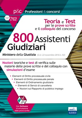 Rivolto a quanti intendono prepararsi al concorso per 800 Assistenti Giudiziari presso il Ministero della Giustizia (G.U. 22 novembre 2016, n. 92), il testo riporta le nozioni teoriche di base per affrontare al meglio le prove d’esame (prima e seconda prova scritta e colloquio).