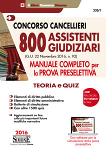 Con Gazzetta Ufficiale del 22 novembre 2016, n. 92, è stato pubblicato l’atteso bando per 800 assistenti giudiziari. Il concorso è articolato in una prova preselettiva, in due prove scritte e in un colloquio. La prova preselettiva consisterà in una serie di quiz a risposta multipla su due materie: elementi di diritto pubblico ed elementi di diritto amministrativo.