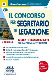 Il volume, ormai giunto alla sua V edizione, costituisce un valido ed aggiornato eserciziario indicato per la preparazione alla prova attitudinale del concorso pubblico, per titoli ed esami, bandito periodicamente dal Ministero degli Affari Esteri e della Cooperazione Internazionale, per l’accesso alla carriera diplomatica in qualità di Segretario di Legazione in prova.