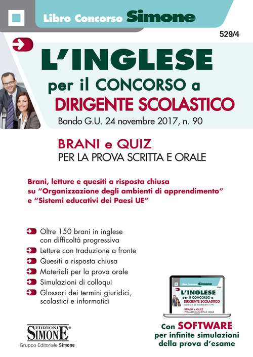 Abbiamo ritenuto opportuno, inoltre, offrire in appendice, come momento esercitativo aggiuntivo, i quesiti della banca-dati ufficiale dell’ultimo Concorso per Dirigente scolastico (quello del 2011), con chiavi di risoluzione, in quanto ricchi di termini e modi di dire riferiti all’ambito educativo, con i quali è sempre utile acquisire una buona dimestichezza.