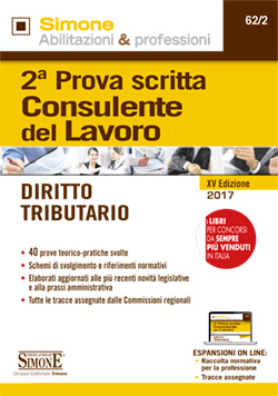 Questo testo di preparazione all’esame di abilitazione alla professione di consulente del lavoro contiene 40 elaborati di Diritto tributario. Il volume presenta caratteristiche che lo rendono un indispensabile sussidio di studio per superare con successo la prova di abilitazione. Le tracce sono caratterizzate da esemplificazioni e casi pratici, con l’utilizzo anche della modulistica ufficiale, inerenti agli adempimenti piu ricorrenti nell’attività professionale del consulente del lavoro (modello CU, mod. 730, mod. F24, buste paga etc.). Il lavoro e corredato di un’appendice normativa che riporta le principali disposizioni che regolano l’attività professionale del consulente del lavoro e di un’appendice con le tracce assegnate agli Esami di Stato dal 2010 ad oggi. Possono essere, inoltre scaricate le tracce assegnate negli anni precedenti al 2010 e ulteriori approfondimenti normativi tramite il QR code posto sul retro del volume. Si e tenuto conto, in particolare delle ultime innovazioni apportate all’impianto tributario dal D.L. 193/2016, conv. in L. 225/2016 (Decreto fiscale), dalla L. 232/2016 (Legge di Bilancio 2017), dal D.L. 244/2016, conv. in L. 19/2017 (Decreto milleproroghe) e dal D.L. 50/2017, conv. in L. 96/2017 (Manovra correttiva 2017).