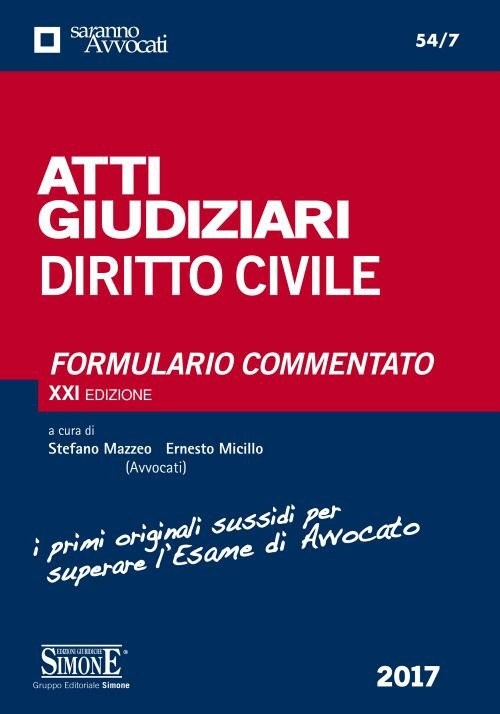 Lo svolgimento dell’esame di avvocato prevede, tra le prove scritte, la redazione di un atto giudiziario in materia di diritto civile, penale od amministrativo, a scelta del candidato. Tenendo conto del programma, si offre una raccolta sistematica degli atti giudiziari di diritto civile, probabili oggetto della prova, alla luce delle tracce assegnate negli anni precedenti e delle questioni cui si è dedicata la giurisprudenza nei tempi più recenti. L’edizione costituisce un agile strumento di studio, proponendo la puntuale redazione dell’atto nonché un commento con l’indicazione degli istituti processuali che disciplinano l’atto in oggetto onde fornire gli strumenti necessari alla stesura dell’atto anche se la traccia dovesse essere diversa. A tal fine, nella presente edizione è stata inserita un’introduzione allo scopo di indirizzare i candidati nella redazione dei documenti, non solo relativamente allo schema formale dell’atto, ma tenendo conto della direzione da seguire e degli argomenti in fatto ed in diritto di cui tenere conto nell’ambito delle situazioni più complesse. Il lavoro, inoltre, è anche un’utile ed aggiornata guida alla pratica forense, consentendo agli aspiranti avvocati di cimentarsi nella redazione degli atti grazie alle più recenti novità disciplinari concernenti il processo civile. Si raccomanda, tuttavia, di affiancare alla teoria anche la pratica presso uno studio legale: l’effettivo esercizio della professione, infatti, costituisce senz’altro il più qualificato punto di partenza.