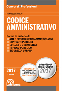 Questo volume è stato realizzato al fine di consentire sia ai concorsisti – e in particolare a coloro i quali si apprestano a sostenere il concorso in magistratura le cui prove scritte sono previste nel luglio 2017 – che ai professionisti del settore, di avere a disposizione un’opera realmente esaustiva, che possa dunque soddisfare ogni esigenza di consultazione e di studio. Fra le caratteristiche peculiari di questo codice si segnalano: l’aggiornamento dell’apparato normativo; la mole degli argomenti presi in considerazione, tale che ogni aspetto fondamentale del diritto amministrativo viene declinato attraverso l’esposizione delle norme più rilevanti in materia; la selezione delle leggi pubblicate, che sono state scelte fra quelle che possono rivestire maggiore utilità in sede di prova di concorso. L’opera è aggiornata con: il D.L.vo 19 aprile 2017, n. 56, correttivo al “Codice dei contratti pubblici” la L. 18 aprile 2017, n. 48, in materia di sicurezza nelle città; la L. 13 aprile 2017, n. 46, nuove norme contro l’immigrazione illegale; la L. 7 aprile 2017, n. 47, sui minori stranieri non accompagnati; il D.L.vo 15 marzo 2017, n. 38, nuove norme sulla corruzione tra privati; la L. 8 marzo 2017, n. 24, nuove norme sulla responsabilità sanitaria. L’opera si rivolge a concorsisti e operatori del diritto.
