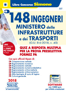 Un indispensabile strumento di preparazione alla prova preselettiva del concorso bandito dal Ministero delle Infrastrutture e dei Trasporti (G.U. 8-6-2018, n. 45) per l’assunzione di 148 ingegneri da destinare alle esigenze del Dipartimento per i trasporti, la navigazione, gli affari generali e il personale.
