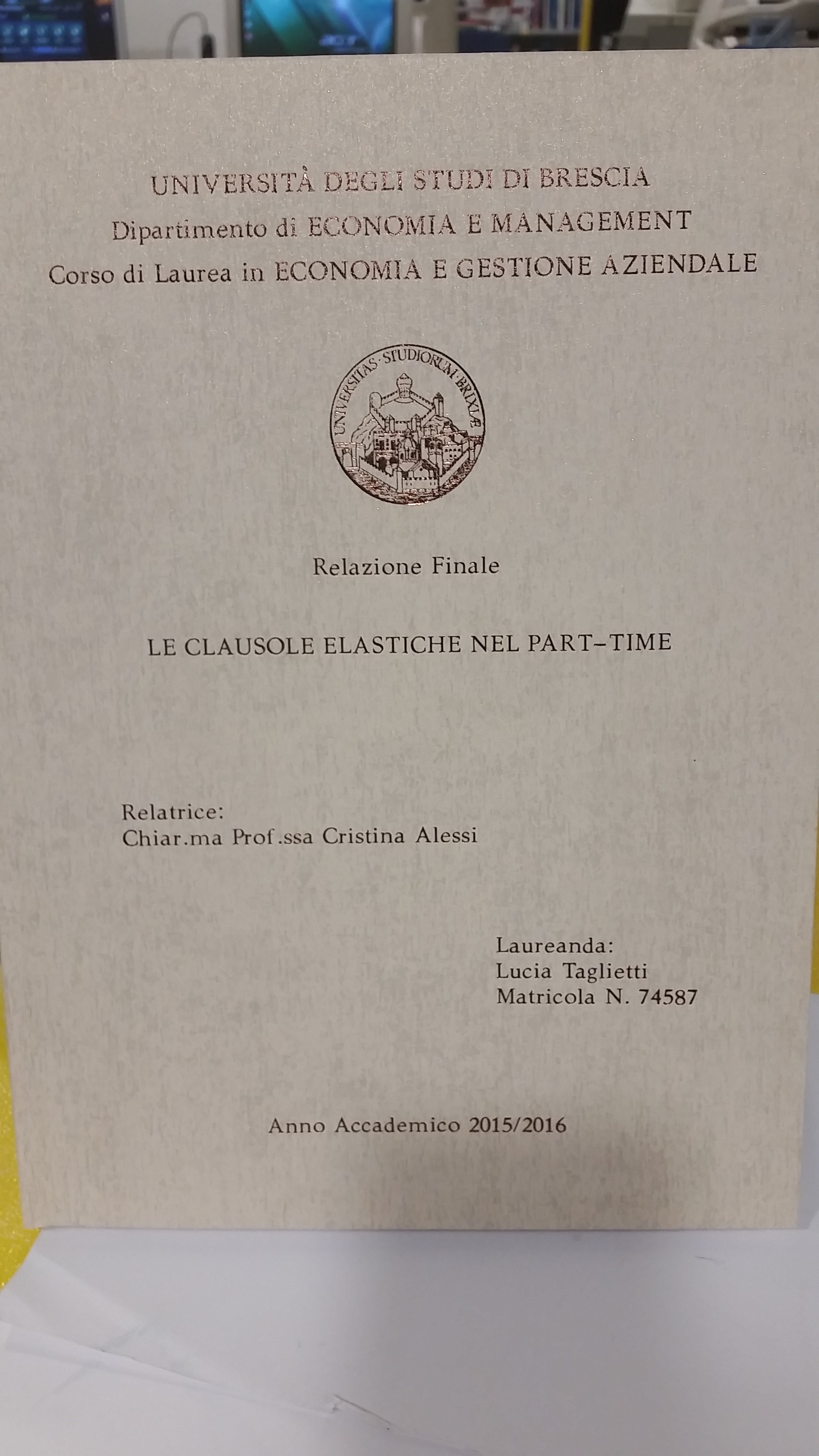 Esempio di tesi rilegata in Terracina bianca con scritta in rame scuro. Tags: rilegatura, terracina, tesi